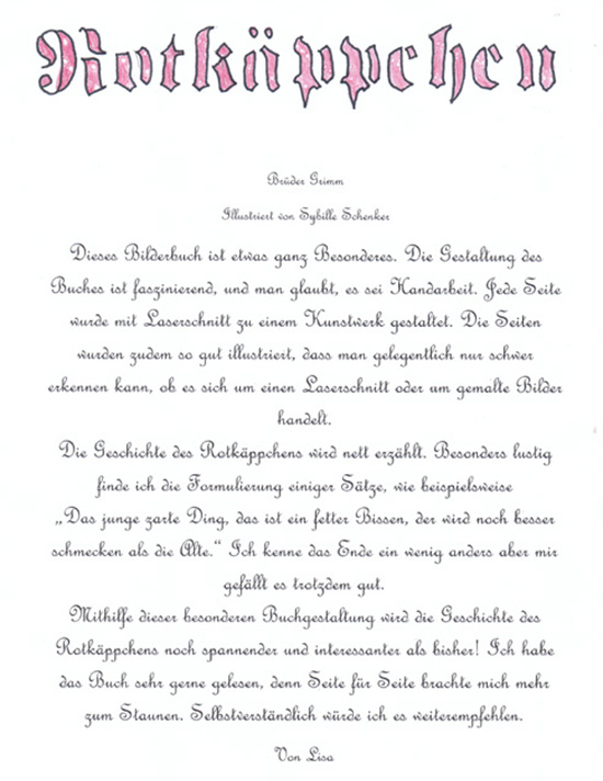 Markus U.: Die Rezension der 13-Jährigen Anna find ich toll :-D LG Markus...