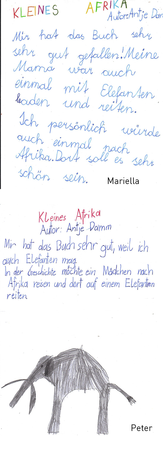 Tobias: Ich mag das Buch, weil es viele Seiten hat und da neue Sachen vorkomme...