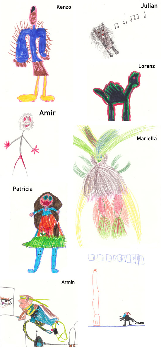 Die Kinder der ersten Klasse können noch nicht schreiben. Ich habe das Buch vorgelesen und die Schüler gebeten den “Wink” zu zeichnen, so wie er ihnen in die Fantasie springt.