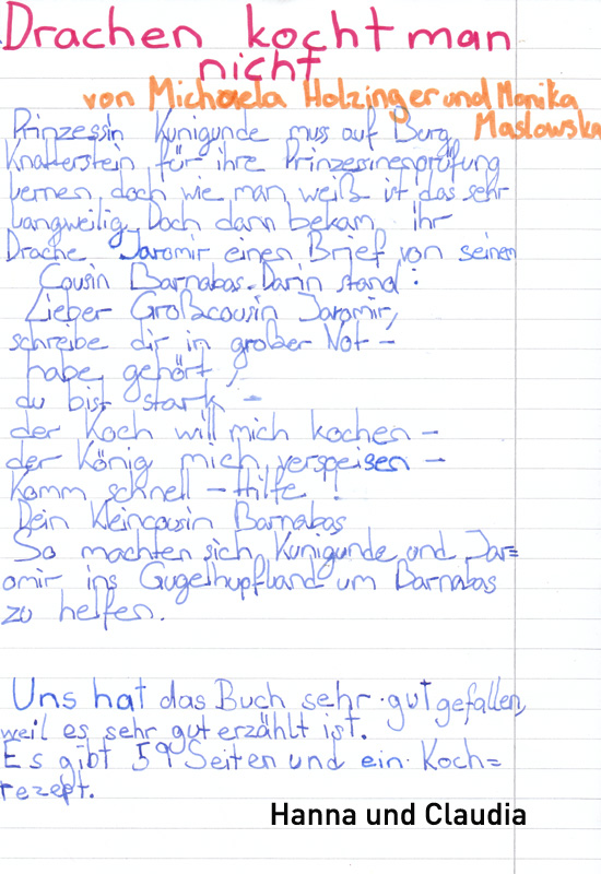 ich wollte mich gerne bei euch persönlich für die schöne, handgeschriebene (!) Buchbesprechung bedanken. Auch der gezeichnete Missjö Schmatz gefällt mir oberdrachengut!!! Es freut mich sehr, dass euch die Geschichte gefallen hat.