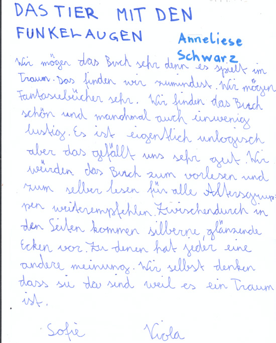 Markus U.: Die Rezension der 13-Jährigen Anna find ich toll :-D LG Markus...