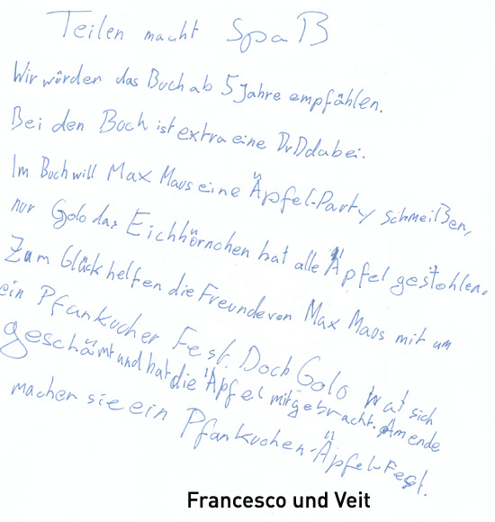 Tobias: Ich mag das Buch, weil es viele Seiten hat und da neue Sachen vorkomme...