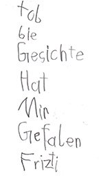 Tobias: Ich mag das Buch, weil es viele Seiten hat und da neue Sachen vorkomme...
