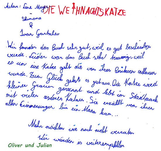 Tobias: Ich mag das Buch, weil es viele Seiten hat und da neue Sachen vorkomme...