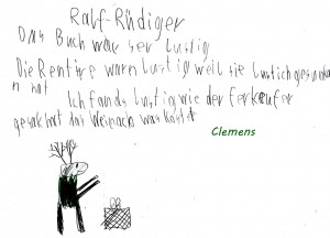 Tobias: Ich mag das Buch, weil es viele Seiten hat und da neue Sachen vorkomme...