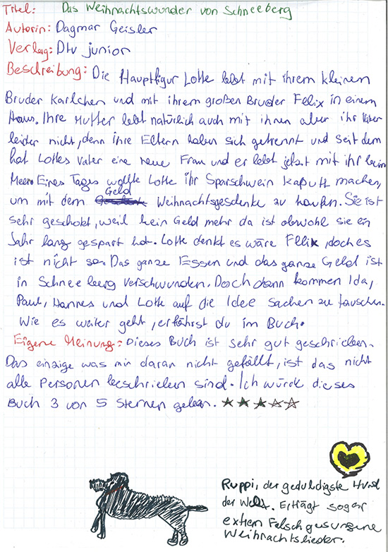 Tobias: Ich mag das Buch, weil es viele Seiten hat und da neue Sachen vorkomme...