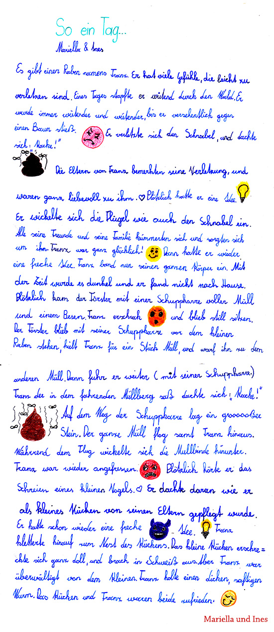 Mariella und Ines (4. Klasse VS) schrieben 3 Unterrichtseinheiten an ihrem Text, Karen (3. Klasse) war schneller.