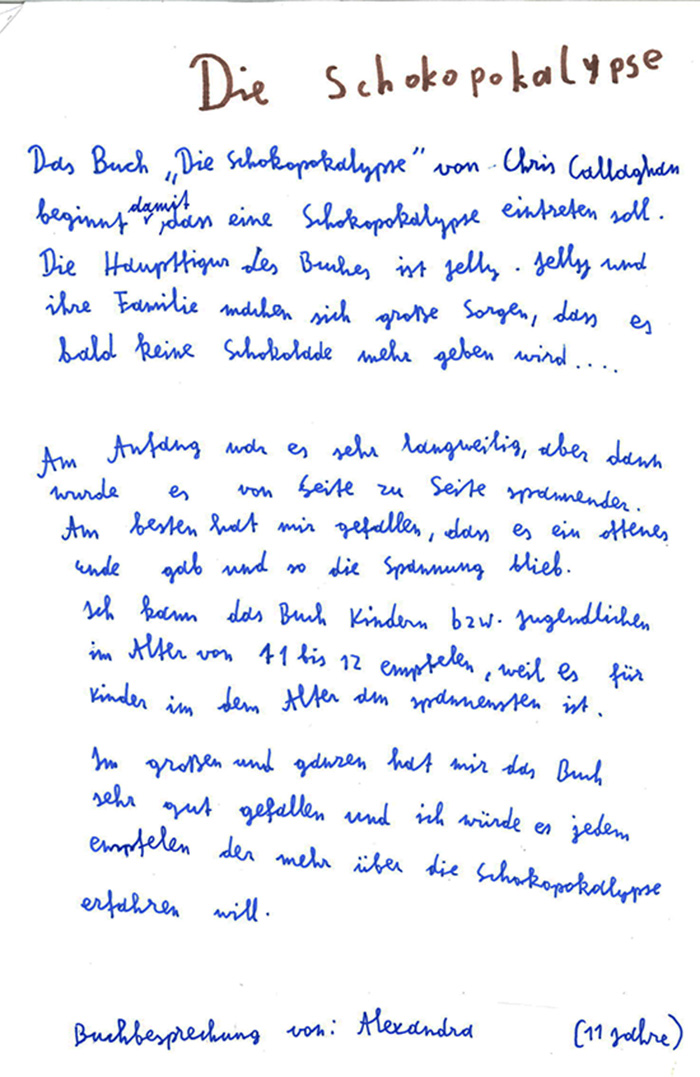 Tobias: Ich mag das Buch, weil es viele Seiten hat und da neue Sachen vorkomme...